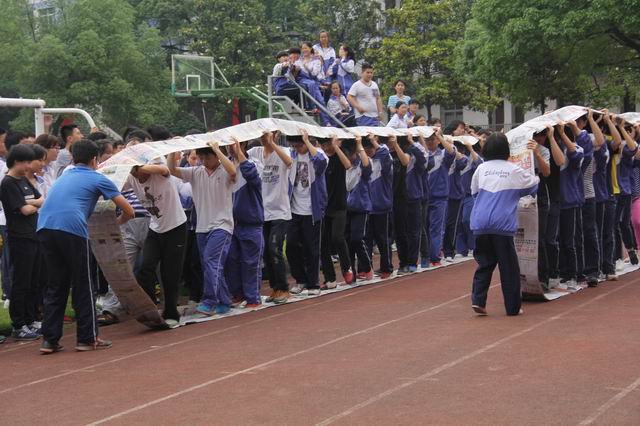5月29日下午,高二年级在校田径场举行了“无敌风火轮”心理趣味游戏比赛。15个同学脚步一致在用报纸做成的风火轮内前行,团结合作,积极进取,在游戏中舒缓了心情,凝聚了力量。