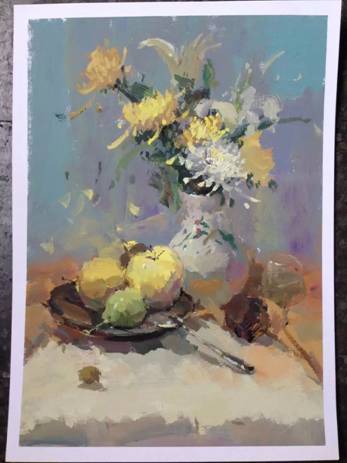 本周一上午八点,十八中美术教师齐聚美术楼“大师工作室”开展了新一轮的美术教师色彩培训。此次培训首先由学科带头人李志华校长主持,他强调,本次培训主要是以提高教师色彩专业水平为目的,从而提高美术教学质量,培养更多优秀人才。他鼓励专业老师们要爱画画,努力多画画,并且要有高度责任心,成为一名“画得了画,带得了班,上得好课”的合格美术教师。接下来是陈鹏老师为我们分享了他对色彩的认识,色彩教学的经验和自己在色彩实践中的感悟,技法的表现。最后陈老师以示范的形式给老师们展示了一副静物色彩画完成的全过程。