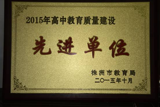 2015年全市高中教育质量建设会议上,我校获评“高中教育质量建设先进单位”和“高中学业水平考试先进单位”。“高中教育质量建设先进单位”以二本升学率为标准,2015年获评的学校中省示范高中有六所,非示范性高中有四所,分别为株洲市二中、攸县一中、南方中学、醴陵市一中、株洲市八中、茶陵县一中、株洲长鸿实验学校、北师大株洲附校、株洲市十八中、株洲县一中。获得“2015年高中学业水平考试先进单位”的学校是株洲市二中、南方中学、株洲市八中、九方中学、炎陵县一中、攸县一中、株洲市三中、株洲市十八中、株洲长鸿实验学校、茶陵世纪星学校。