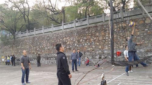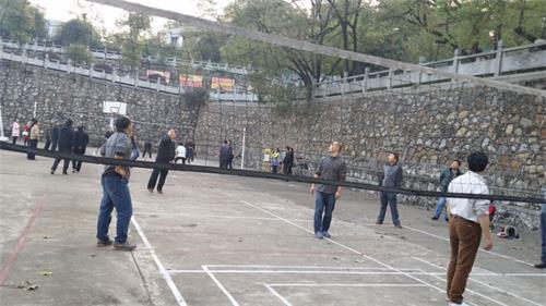 在刚刚进行的校教职工男子排球赛第一场小组赛中,高三级部的男同志们众志成城,齐心协力,赢得了开门红!