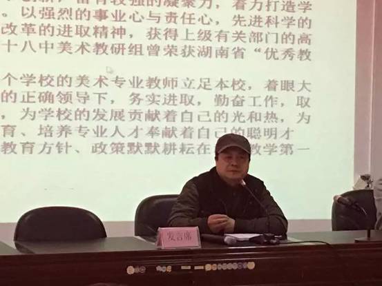 会议由李志华校长代表东道主十八中向全市的美术教师们表示了热烈的欢迎和诚挚的问候。会上,市教育局体卫艺科科长黄作军对2015年株洲市美术教育工作做了全面的总结,指出在2015年里全体美术老师付出了辛勤工作,取得了优异的成绩,希望老师们在新的一年里再接再厉。接着由市教育局体卫艺科副科长肖男对美术教学进行了全方面的指导。随后,市美术专业教研员姜贻华老师对2016年美术教研重点工作进行了布置,并对工作要点进行了详细的解读。