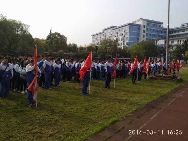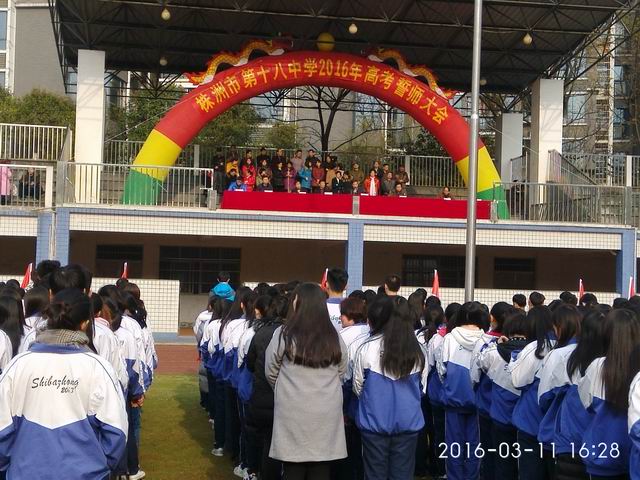 3月11日下午,阳光明媚,春意满校园。我校在足球场举行2016届高三师生“奋战九十天、再创新辉煌”誓师大会。李国柱校长、杨电波书记等校领导和高三全体师生参加了誓师会。大会由高三级部匡金鹏级部长主持,级部长刘云华首先作了动员讲话,随后,高三教师代表、学生代表先后发言。他们的发言激荡人心,充满了必胜的信心,引起了全场一次次热烈的掌声。接着举行了隆重的宣誓活动。首先是全体高三老师宣誓,他们在誓言中充分表达了团结一心、拼搏奋斗、勤于奉献的决心;随后同学们的铿锵誓言更是震憾人心,高昂的口号响彻全场,气冲霄汉,把大会的气氛推向了最高潮。