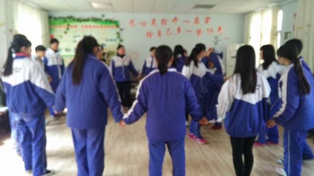 然后是趣味心理游戏,在游戏中大家得到了放松,也加深了认识。数字抱团游戏中,有4位同学没有“抱团”,爽快的接受了“惩罚”,他们商议用家乡话念“学校心理公约”,衡阳话,株洲攸县话,株洲马家河话,特别是最后一位女生的四川话,让大家强烈要求再念了一句“让我们携起手来互帮互助,树立信心,快乐成长,共同铸就阳光美丽心灵!”一时间活动室充满了新奇,逗趣,温暖,力量。