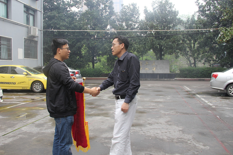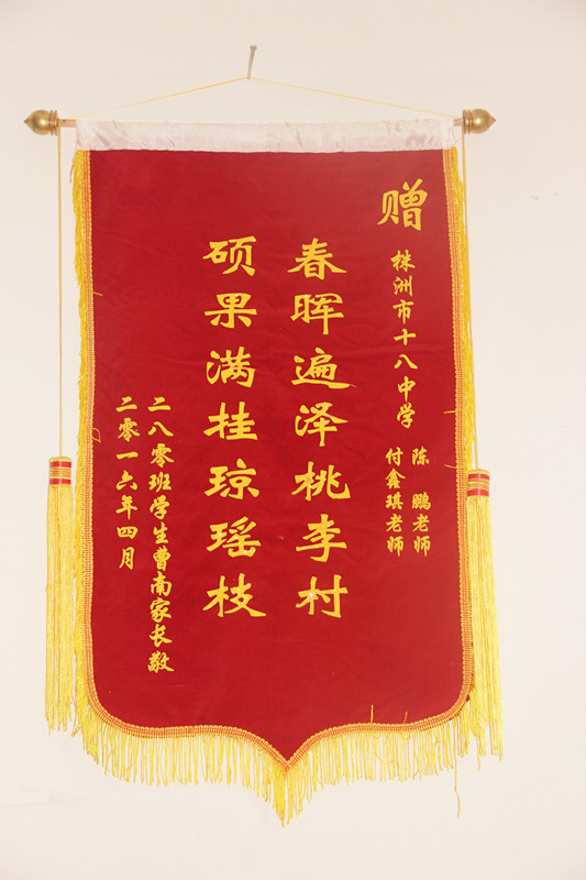 4月14日上午,曹南同学的父亲带着鞭炮与锦旗来到十八中,向曹南同学的专业老师——陈鹏老师和付鑫琪老师,以及十八中的美术教师团队表达了诚挚的谢意。