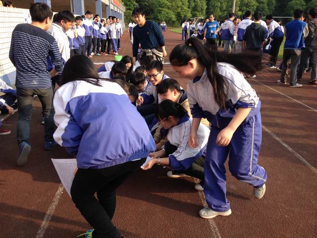 4月28日下午第八、九节课,阳光灿烂,我校高三全体学生以班级为单位在田径场开展了“我心飞扬”心理拓展游戏活动。活动由高三级部组织,心理教育发展中心策划,体育组协办。