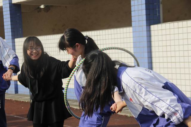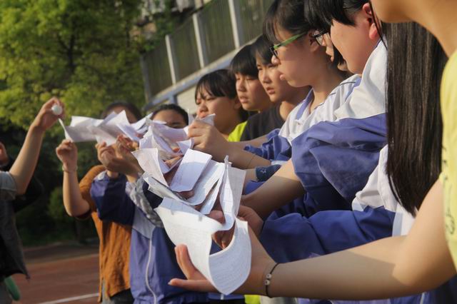 附株洲教育网报道:“我心飞扬”市十八中高三举行心理拓展游戏活动