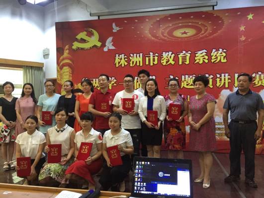 图为我校安瑛老师代表学校参加“两学一做”主题演讲比赛,并获得三等奖。(第二排右3为安瑛老师)