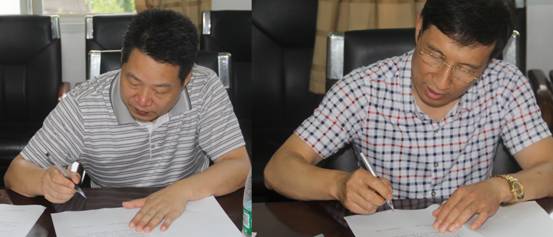 图为米金仁校长(左)与杨电波校长(右)签订结对协定