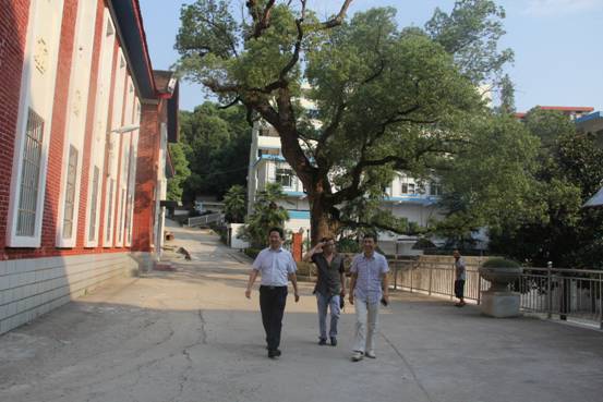 图为米校长邀请我校杨校长、彭副校长一起参观校园,交流办学理念、高三教学与学生管理经验。