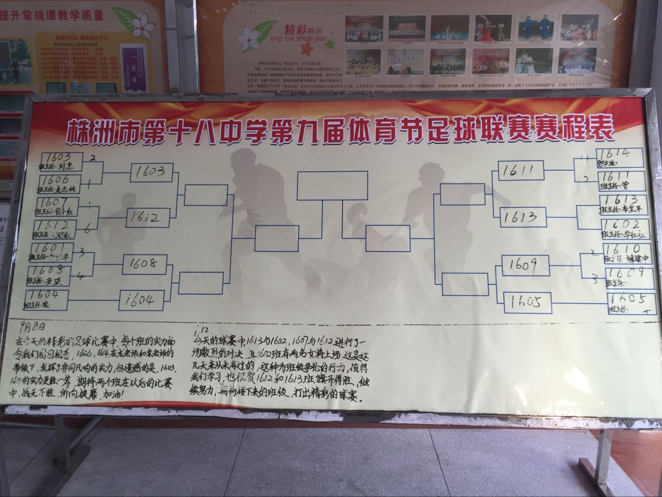 高一年级第九届足球联赛正在如火如荼的进行中,经过几轮激烈的角逐,比赛日益白热化。9月21日下午第八节课后将进入第二轮淘汰赛,1604VS1608 ; 1605VS1609,最终获胜的两队将于第二天第八节课后决出冠亚军!