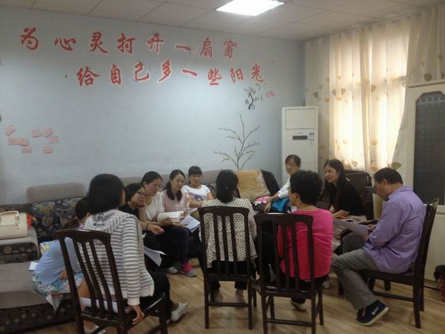 专职心理教师刘赛花首先带大家玩了课程中的一个游戏,瞬间扫除了大家一天的疲劳。接着刘赛花老师简要介绍了两天课程的主要内容:一、如何教导孩子做情绪管理;二、一致性沟通—家庭雕塑的神奇作用。随后谢桂先老师做分享,她坦承自己是带着困惑去的,听完后,受益匪浅,反思了自己几十年的生活,有了很多新的体会,她还细心地把培训学员中一些动人的分享挑选出来,让参加成员讨论、交流。