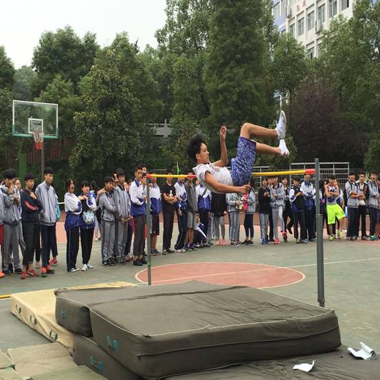 10月13日下午,两点半田径场的跳高场地迎来了男子跳高的决赛,可能是大家都知道这场决赛不一般,瞬间围满了加油打气观看的同学们,运动员一轮又一轮的试跳,一次又一次的过杆,同学们的欢呼声和掌声也是此起彼伏,最终1513班邹祥最后以1.59m的成绩获得男子跳高的冠军并打破了校运会记录!