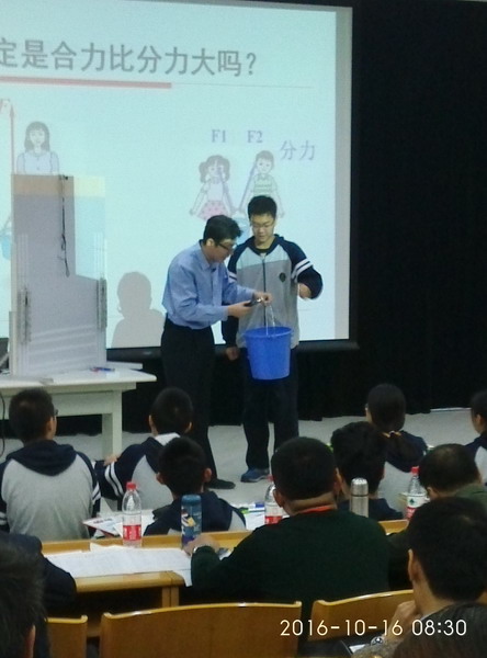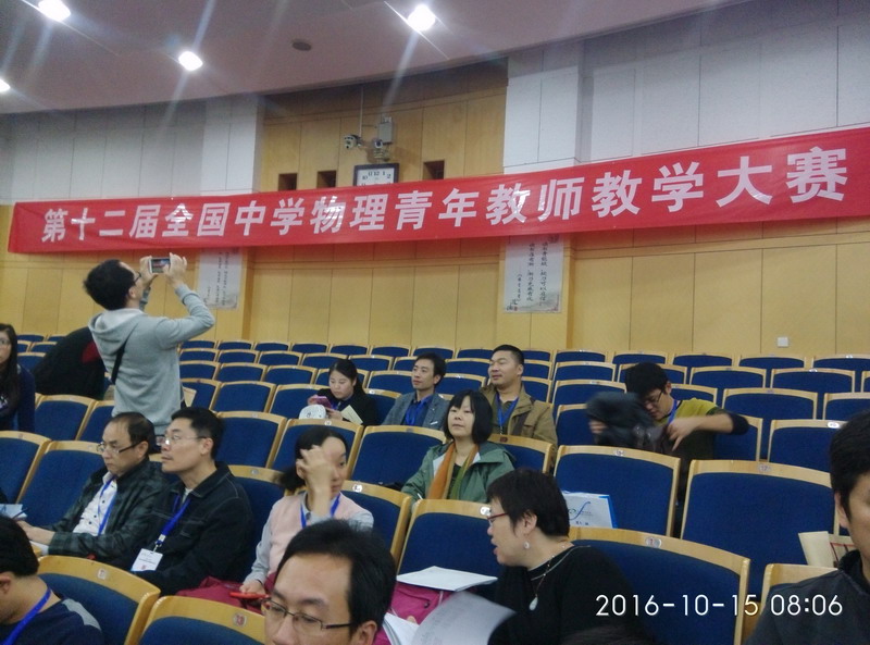 2016年10月14日至17日,我非常荣幸地参加了在北京举行的“第十二届全国中学物理青年教师教学大赛”活动,亲临现场观摩我国物理教育领域最高级别的赛事,欣赏来自各省市优秀物理教师精彩的表现,开阔了眼界。本次比赛分高中组和初中组两大组别,每个大组又分为A、B两个小组,每个大组各有32节课,我全程在高中组两个赛场中穿梭,认真听了3节《弹力》、1节《磁现象、磁场》、2节《摩擦力》、2节《磁场对通电导线的作用力——安培力》、2节《力的合成》、2节《磁感应强度、磁通量》、2节《力的分解》、2节《磁场对运动电荷的作用——洛仑磁力》八个课题共16节课,还听了闭幕式上高中组陶昌宏评委和初中组评委对部分精彩课堂的精彩点评和对此次赛课的总结。第一次观摩这种高水平的课感触颇深,受益匪浅,其中许多值得我学习的地方。