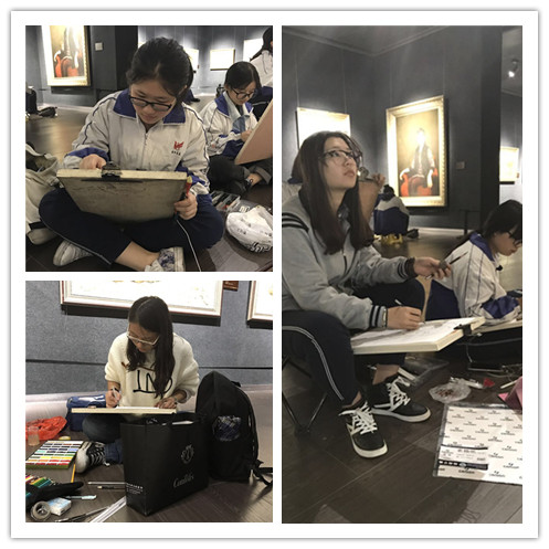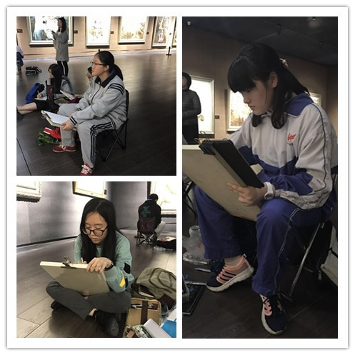上午,同学们主要是参观画展,听罗忠老师、付鑫琪老师和罗昌老师对展出的画作进行赏析,让他们大开眼界,受益匪浅。平时在学校,作为美院班的学生,有这样一种感觉:“站在自己的舞台上,觉得舞台很大,可是站在世界的舞台上,才发现了我们自己的渺小”,参观大师的作品,不仅是感受到艺术的魅力,让人震撼,更让他们看到了自己的差距,自己将要努力的方向。所以在下午让他们选择自己感兴趣的画进行临摹时,一个个都特别认真,沉浸在这样一个艺术的氛围与天地里,感受不一样的创作情怀。期待他们的成长!