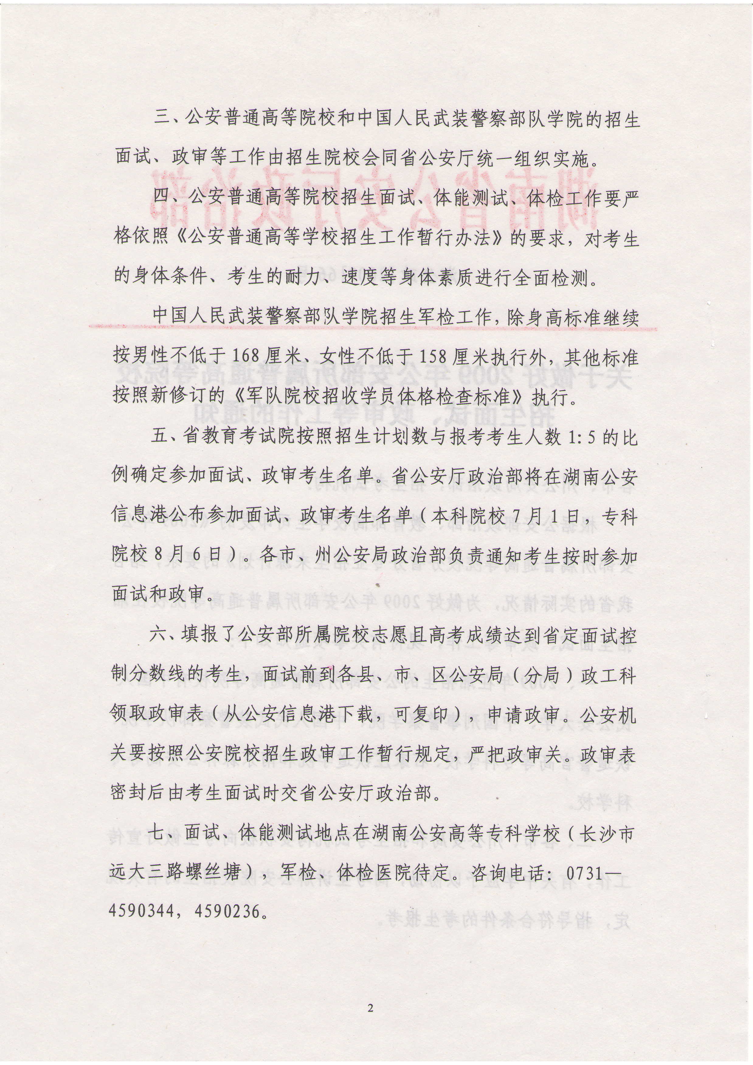 关于做好2009年公安部所属普通高校招生面试、政审等工作的通知