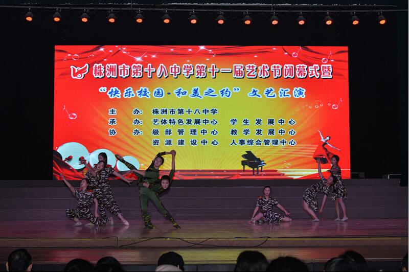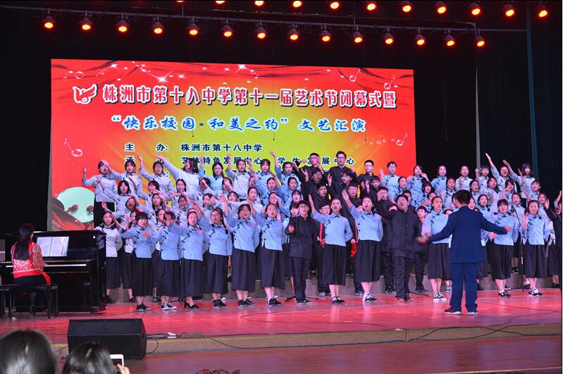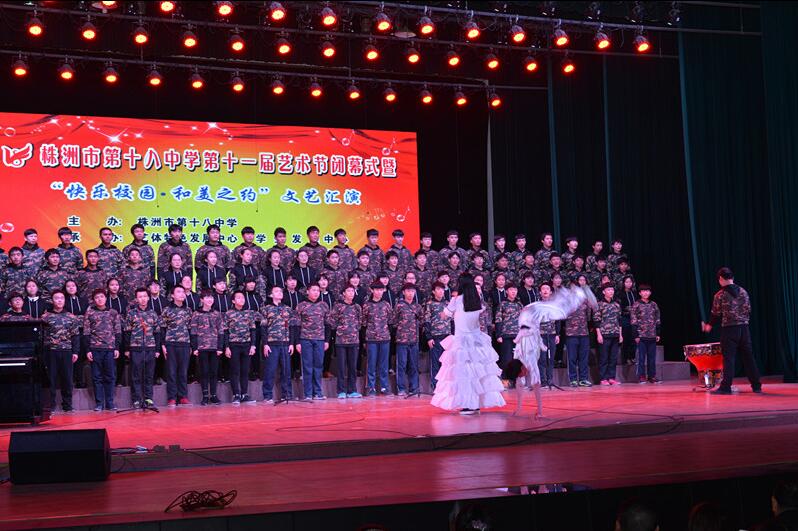 株洲市十八中第十一届校园文化艺术节在一片热闹、祥和的气氛中落下了帷幕。此次活动展现了我校师生良好的精神风貌,极大地丰富了师生校园生活,谱写了我校艺术特色教育新的篇章。相信这一次的经历会深深地刻印在全体演职人员的脑海里,成为永久的美好回忆!