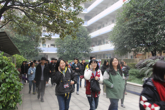 考试结束后,考生走出考场,拿起手机与家长或老师汇报考试情况。