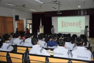 12月28号第八节课,1604班主题班会“手机那些事儿”在学校多媒体教室举行。这次主题班会由王慧,曾良芬和陈慧芳三位年轻老师精心策划,全程学生主持。学生通过观看自主编演的手机情景剧,感悟手机对生活、学习的影响,通过小组讨论、自由辩论等方式深化对手机利弊的认识,现场还播放了家长对孩子们使用手机态度的视频,不少同学认为,手机为生活、学习提供了便利,但使用手机需要一定的自控力。班会环环相扣,层层推进,最后,同学们制定了君子协定:“我是十八中人!我是1604的一份子!我愿遵守校纪班规,立校园现代绅士淑女之品!”。班会即将结束,班主任陈慧芳老师适时进行了简要的精彩总结。
