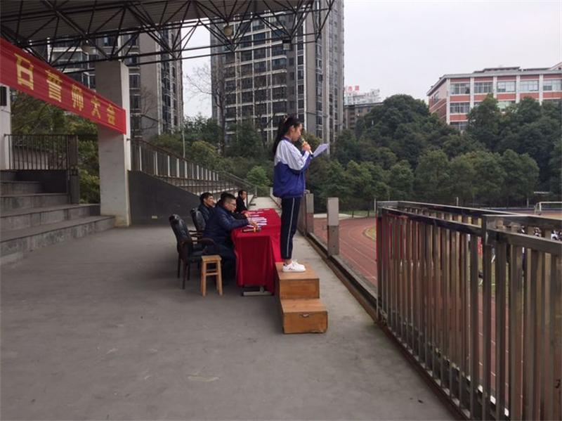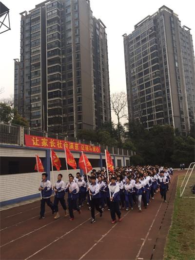 最后,全体高二学生在操场进行了阳光体育活动——跑操展示,整齐划一的队伍,器宇轩昂的斗志,响彻云霄的口号,感染了主席台的每一位评委,感动了身边的每一位老师。相信在学校领导的关怀和指导下,在文部长的带领下,通过全体高二师生的奋力拼搏,定能实现学考100%的宏伟目标。