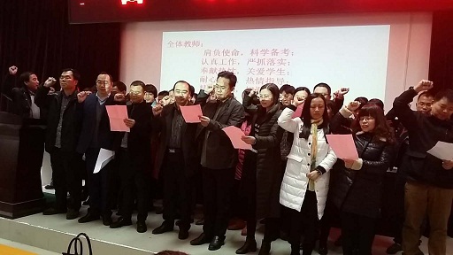 “肩负使命,科学备考;精讲巧练,把握方向。做学生坚强的后盾,为高考保驾护航”教师誓言掷地有声。