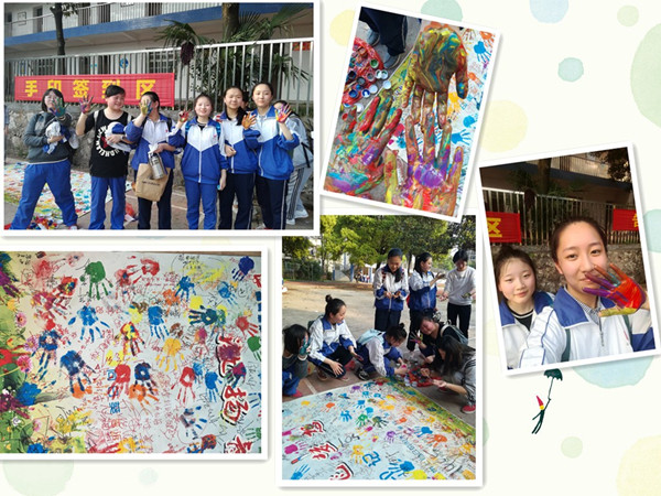 手印签到:在展板上写下梦想,盖上手印,一起努力
