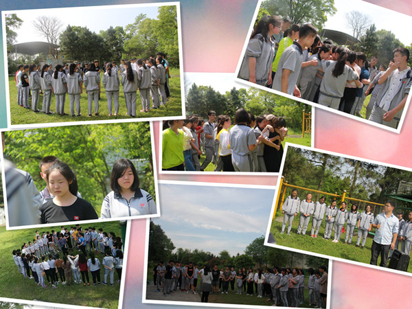 一些班在团队拓展,另一些班就在空旷的水泥地上玩起了趣味游戏“无敌风火轮”。各班领取16张报纸,14条胶带,分组制作,再集合比赛,考验的是同学们的行动力,创造性及团队合作。还有一个大家玩得不亦乐乎的游戏,“前方打仗,后方支援”,各组排成一个纵队,由基地教官轮番规定需要什么东西,如六根鞋带,第五位同学5样东西等等,看哪个小组最先完成任务。