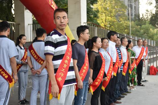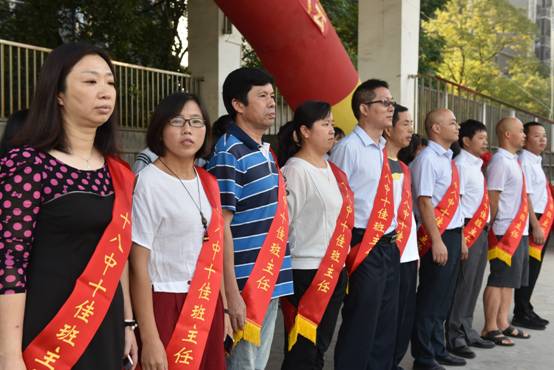 表彰先进,蓄势再起航。彭仁堃书记宣读了2017年度表彰决定,授予杨国强等十位老师“十佳班主任”称号,授予李志华等十位老师“十佳教育工作者的” 称号,授予刘立红等十位老师“最美教师”称号,授予贾小红、吴云才两位老师“株洲市优秀教师”。由彭书记、欧校长、杨校长为这些获奖教师颁奖。
