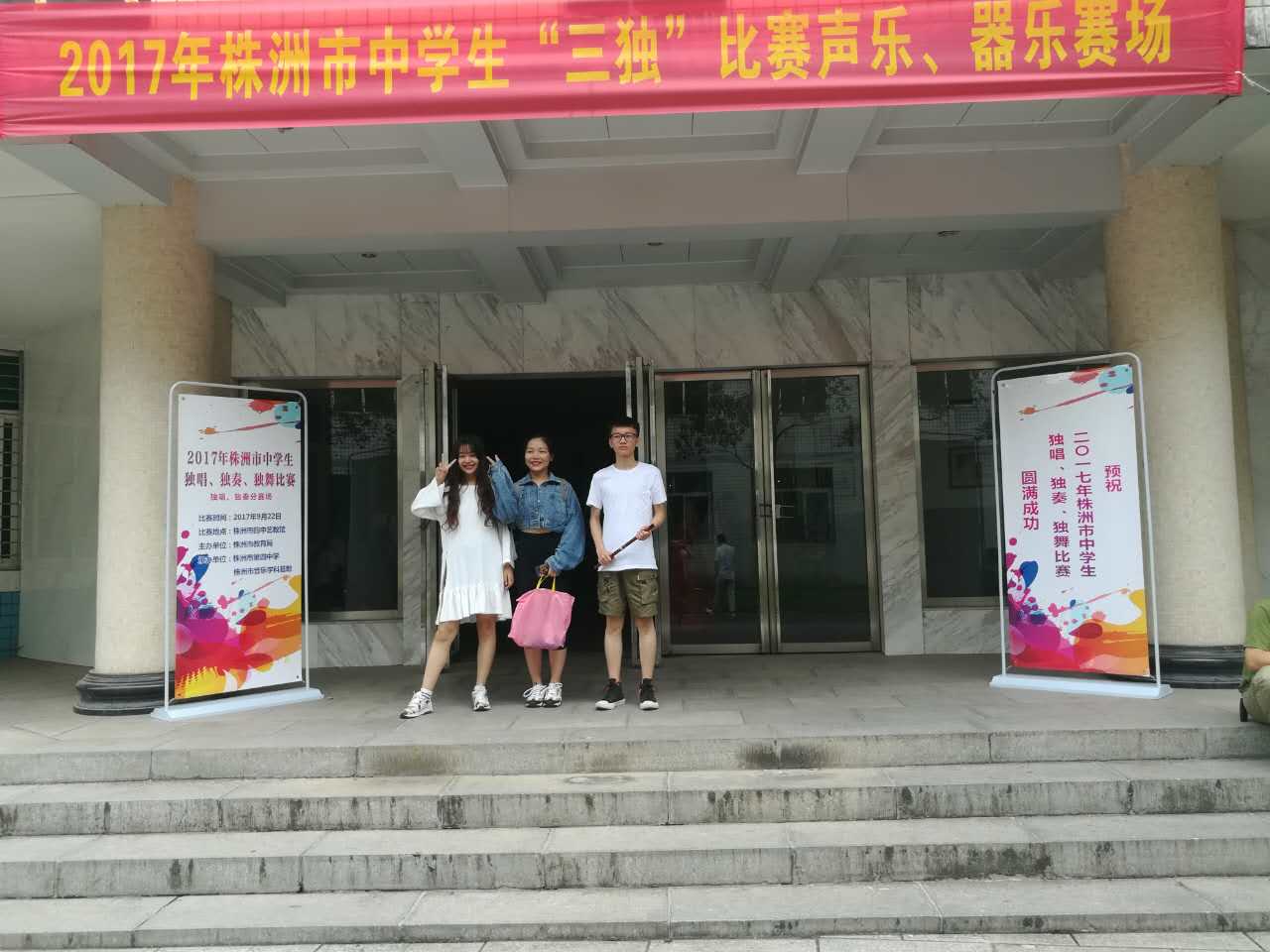2017年9月22日,2017年株洲市高中阶段独唱、独奏、独舞(简称“三独”)比赛在株洲市四中进行了总决赛,经过评委现场打分,我校高二年级周杨同学凭借一曲《我爱你,中国》被评为独唱类一等奖,并将代表株洲市前往长沙参加湖南省“三独”比赛。同时,李巍老师被评为优秀指导教师。