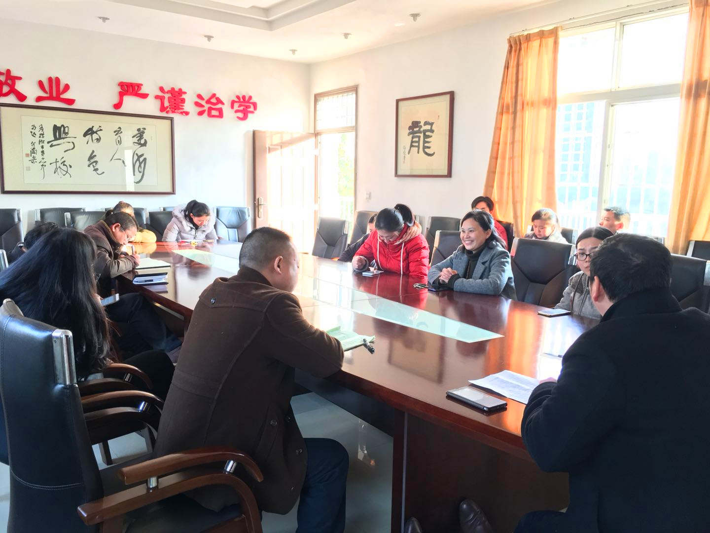 下午4:00,艺术节组委会马不停蹄地在小会议室召开本次文艺节目和合唱入选的班级的碰头会,艺体中心饶鹤龄主任强调本届艺术节要紧扣主题,突出发展素质教育,在节目质量上还需班主任与指导教师多费心。节目总导演李巍老师则从技术层面对各班提出了要求,并将给入选的节目分配了指导老师,要求指导老师及时进班,与班主任及时沟通。