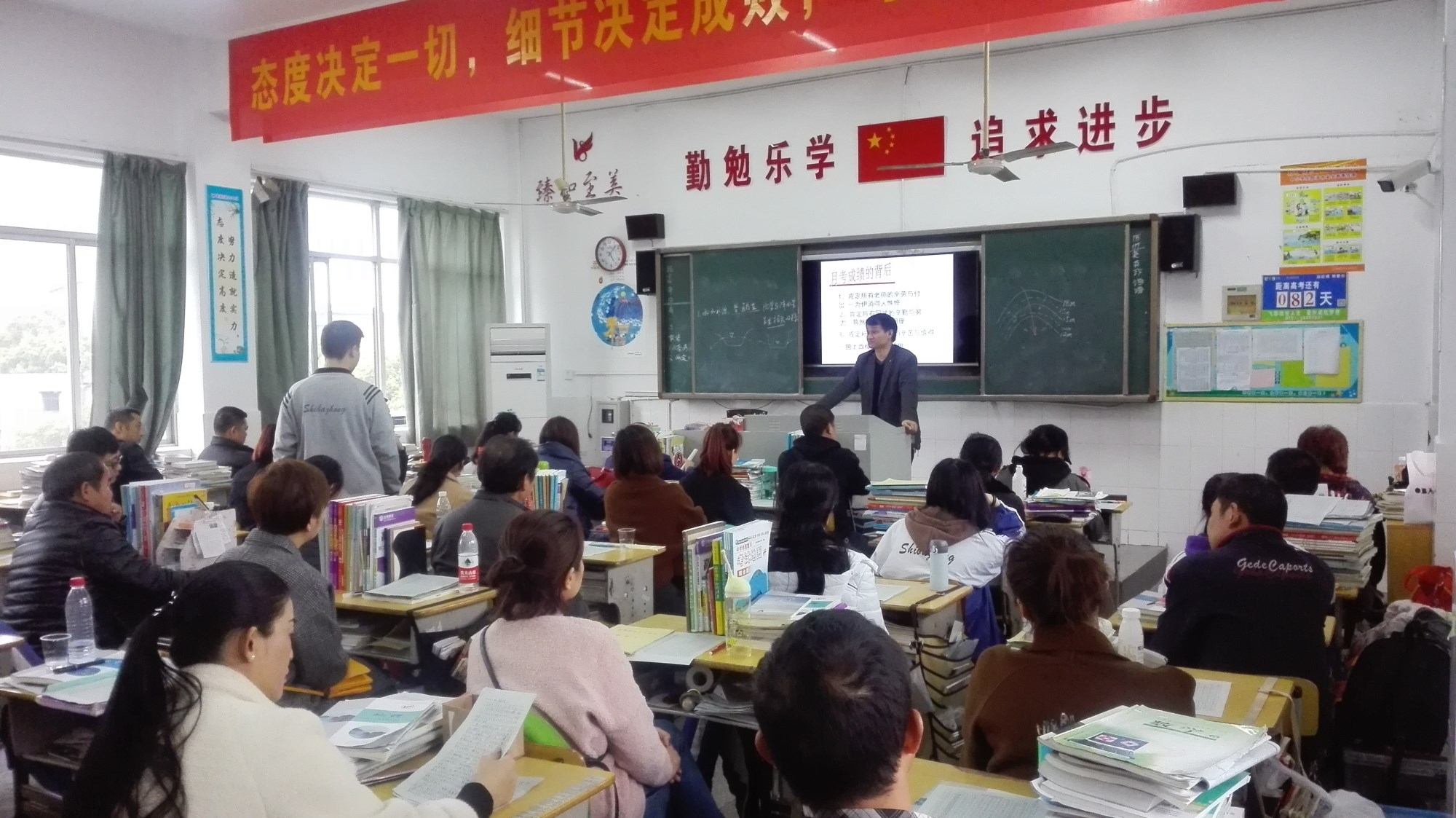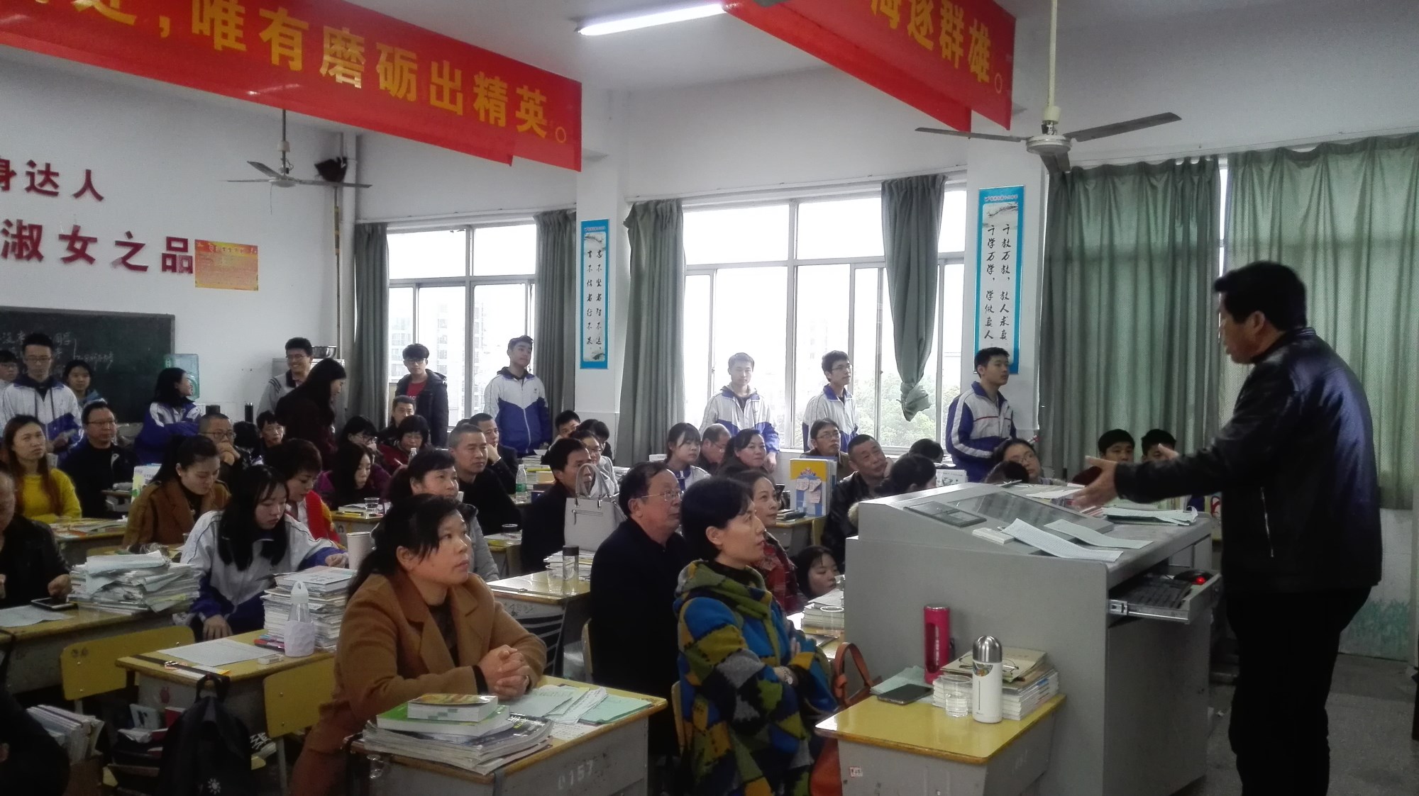 下板块,各位家长回教室继续开会,各专业班的文化班主任老师就目前小孩的学习生活情况向家长进行了汇报,并积极探讨后阶段的班级管理目标、措施及要点。会后家长与任课老师进行了深入交流,共同探讨孩子的教育教学情况及高考措施,并真诚希望老师们能帮助孩子解决学习中的困惑,家长会一直延续到下午6点多才结束。
