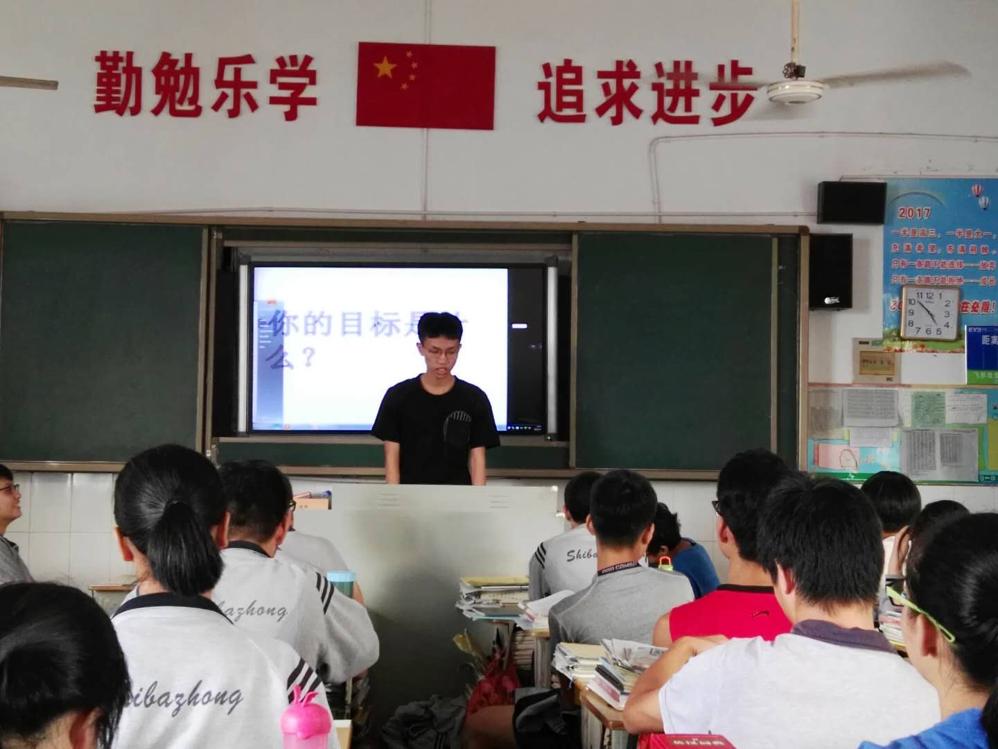 首先在全班同学的强烈要求下班主任曾良芬老师介绍了她读高三时的艰苦岁月,接着由高三蹲点领导李丰源副校长谈树立明确目标的重要性,“目标是奋斗的方向,压力是前进的动力”。打破了宁静的气氛后,很多同学都露出跃跃欲试的表情,有秦佳希等六位同学依次分享了自己理想的大学以及为之愿意做出的努力。这六位同学对高三一年的学习生活已经做了充足的规划,并且给自己竖立了明确的目标。最后杨电波校长也上台发言,他说:“一个没有目标的人是没有意义的,是一个糊涂的人生。”鼓励同学们不仅要树立目标,还要坚定目标,并为之付诸艰辛努力,最终实现目标。整个会场不时响起热烈掌声,这掌声展现了同学们的高昂的斗志。