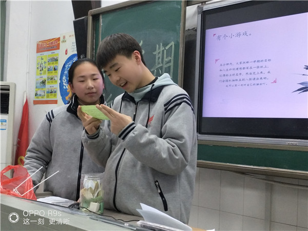 在嬉笑中感受着别人的目标,也仿佛看到了不一样的人生,于己有启示意义。班主任唐玲老师说,本学期班会定在每周三,意味着美术班有了机会,同学们也很开心。她跟学生提了班会两个要求,一是好玩有趣,平时专业生文化和专业学习已经够辛苦了,希望班会是大家喜欢的,好玩的,期待的;二是在玩中能有收获。此次班会是学生自主设计,有人专门负责文稿,有人负责PPT制作,还准备了奖品,礼物,提前进行了排练,现场同学们参与很热情,有笑声,有启示,有思考。有同学反馈说“舒缓了心情”、“增强了动力”,组织的同学自豪的告诉笔者“我们达到了目的,为以后的班会开了一个好头”。