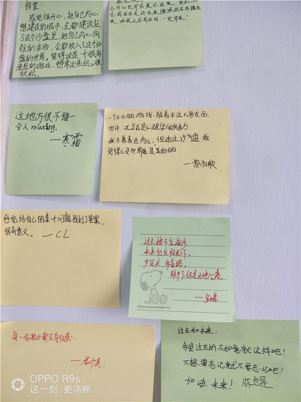 心理中心开放周,迎来了比平时更多的学生,同学们纷纷到心理中心体验,心理宣泄,沙盘游戏,个体咨询,学能训练等等。部分参与体验的同学写下反馈:“聊一聊舒服多了,解决了我很多困惑。”“珍惜现在,才能有更好更美的未来”、“感觉给自己困惑的某一个问题找到了答案,很有意义”、“老师,谢谢您”。