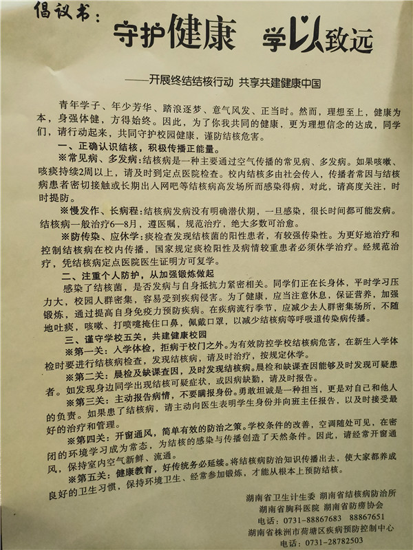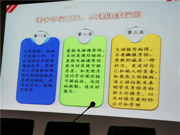十八中党委书记彭仁堃全程到会学习,学生工作发展中心宋晓熙主任、李昶霖副主任,全体班主任,各班班长、团支书、卫生委员、晨午检专管共200多人参加了此次宣讲。 开展终结结核病行动,共建共享健康中国。 预防结核,从我做起。