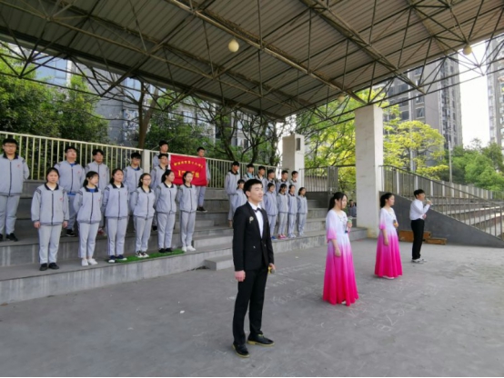 周会主持人:高思敏、吴尚烨 1707班级申请陈述:高思敏 1707风采展示:刘陈颢 1707风采展示:王志豪、刘芯仪、易思宇、何亚文 1707主题演讲:冯博文、宾金玉 庄严的升旗仪式 1707班大合照(前排左二为班主任霍老师)