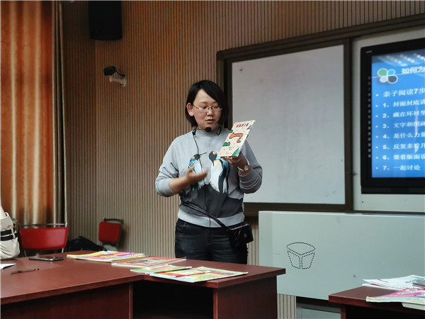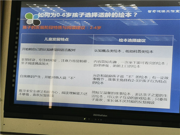 陈老师从4个方面进行了讲解:1.阅读在未来孩子学业中重要性;2.为何绘本是阅读启蒙的最好的媒介;3.如何为0-6岁孩子选择适龄的绘本;4.亲子阅读讲读指导。精心细致的准备,专业通俗的指导,形象生动的讲读,耐心温情的示范,令参与者们受益匪浅!