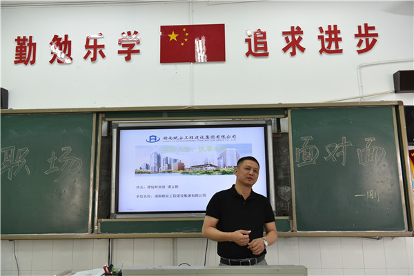 5月22号下午,株洲市十八中迎来了设计师、美术教育、律师、公务员、工程师、企业管理、金融、房地产等各个行业的17位职场嘉宾,他们走近15个职场分享小站,与学生进行面对面交流。嘉宾们介绍自己的工作、职场经历,分享自己的人生故事、感悟,传递生活哲理与生命智慧,并带领孩子们深度感受、体验相关职业、进行互动交流。