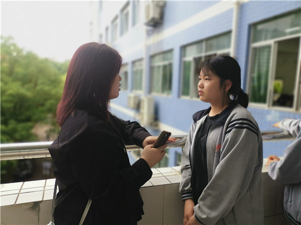 申予杰学长认真听学妹提问,耐心回答