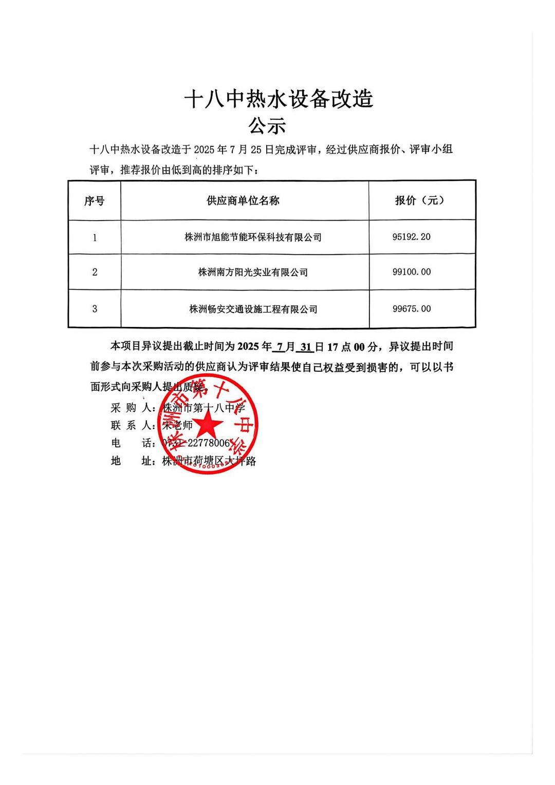 十八中热水设备改造项目询价公告