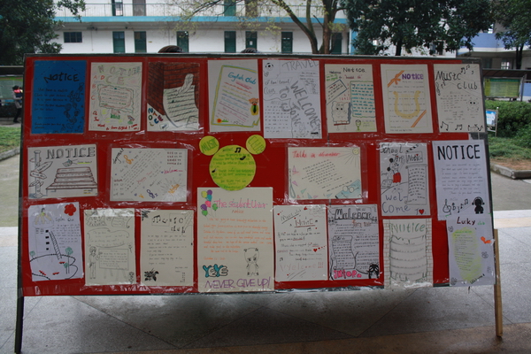 近日,2010年下学期高一英语组“英语海报设计作品大赛”顺利结束,一批富有创意的海报作品脱颖而出,为本次活动画上了圆满句号。本次活动历经2个月时间,在高一英语组全体老师的发动并指导下,学生创作出了很多精美作品。大赛共收到学生作品一百多副,评出一等奖5名,二等奖10名,三等奖15名,优胜奖10名。通过活动,提高了学生学习英语的兴趣,锻炼了学生应用英语的能力,充分体现了新课程倡导的合作探究的教学理念。