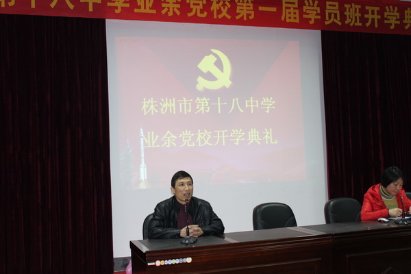12月3日下午,株洲市第十八中学第一届业余党校开学典礼在校多媒体教室隆重举行。校党委书记杨电波同志,党委委员欧林奇、龙志纯、各支部委员和全体业余党校学员出席了开学典礼。