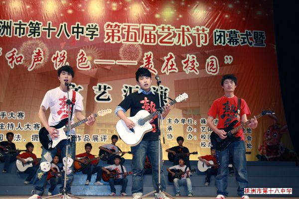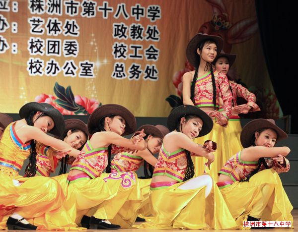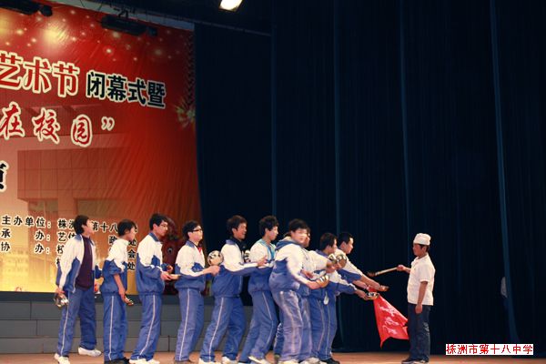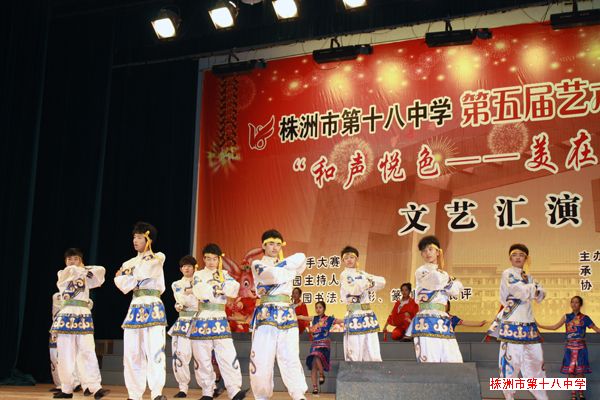 或者,这些表演有些粗糙;或者,舞台背景有些单调。可我分明在这里看到了青春燃烧的火焰,小品、短篇、朗诵、相声、歌舞、乐器弹奏,关于青春、关于成长、关于爱、关于崇高的理想,他们羞涩、紧张甚至有些笨拙,但他们仍然将青春、执着、团结、理想演绎得如此深刻。作为一名十八中人,我感到骄傲,美术领航,文化强基,艺文并举,多翼齐飞,多元发展,十八中的未来一定辉煌!-2011年元旦文艺汇演之动感青春篇。