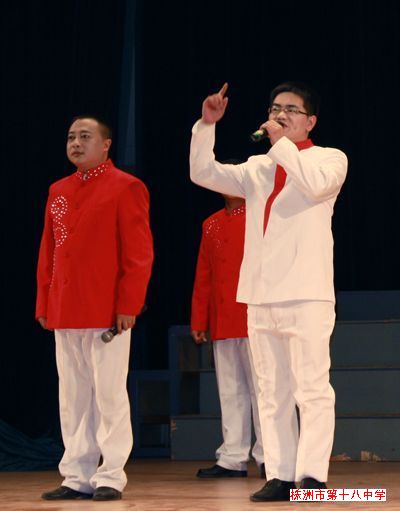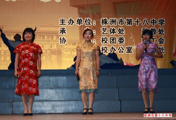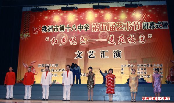 创建湖南省普通高中特色实验学校,将积淀多年的美术特色教育学校特色提升为全面建设美术教育特色学校,是十八中人多年来为之不懈努力的奋斗目标。2010年11月份,我校顺利通过了湖南省特色学校评估验收,省级特色实验学校挂牌指日可待!图片为教师代表在2011年元旦文艺汇演上的节目-配乐诗朗诵《十八中创特之歌》。
