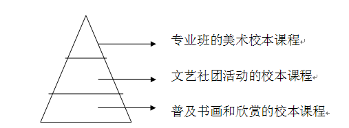 在探索美术教育的过程中,我们发现只注重向学生传授艺术知识,而忽视审美教学;只注重培训学生专业技能,不激发学生创造力的发展,这样的美术教育是不完整的。为了满足全校不同层面学生的需要,我们构建了一个金字塔式多元化的校本特色课程体系,真正做到“以人为本”,实现学生的个性发展。