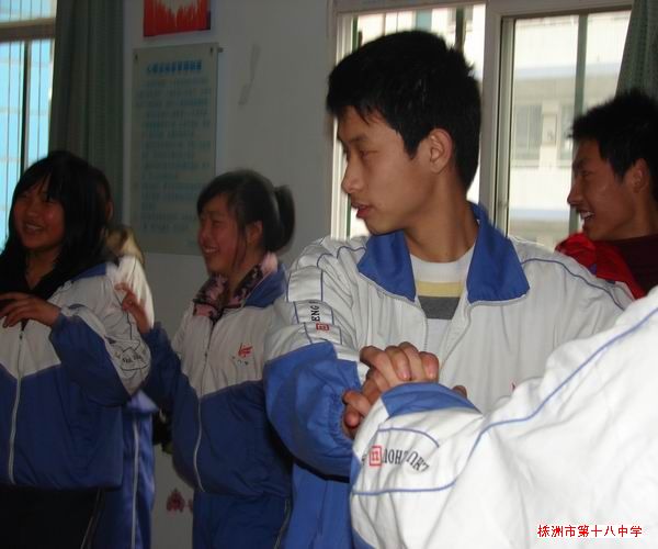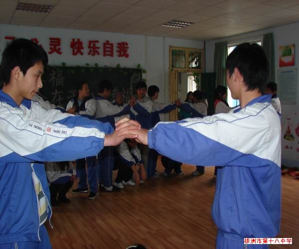 接着心理老师带领大家玩了两个游戏。一个是滚雪球,两两配对,互相介绍班级,名字,兴趣;再是四四组合,八八组合,最后累加到围成一个大圆圈,看谁在规定时间认识最多伙伴。这个游戏训练了大家主动交往的意识,考验瞬间记住别人名字的能力。最后,来自高三年级210班的彭日殊同学通过了考验。她记住了小组所有人的名字,还给他们取了好听而亲切的小名,让我们感觉彼此就像是大家庭的兄弟姐妹一样。同时她是这么介绍自己的:“我叫彭日殊,特殊的殊,我妈妈希望我每天都不一样,每天有成长;然后期待我打牌不要输。。。” “那你爸妈打牌常常输啰!”有人反问道。“恩!”大家都笑起来。