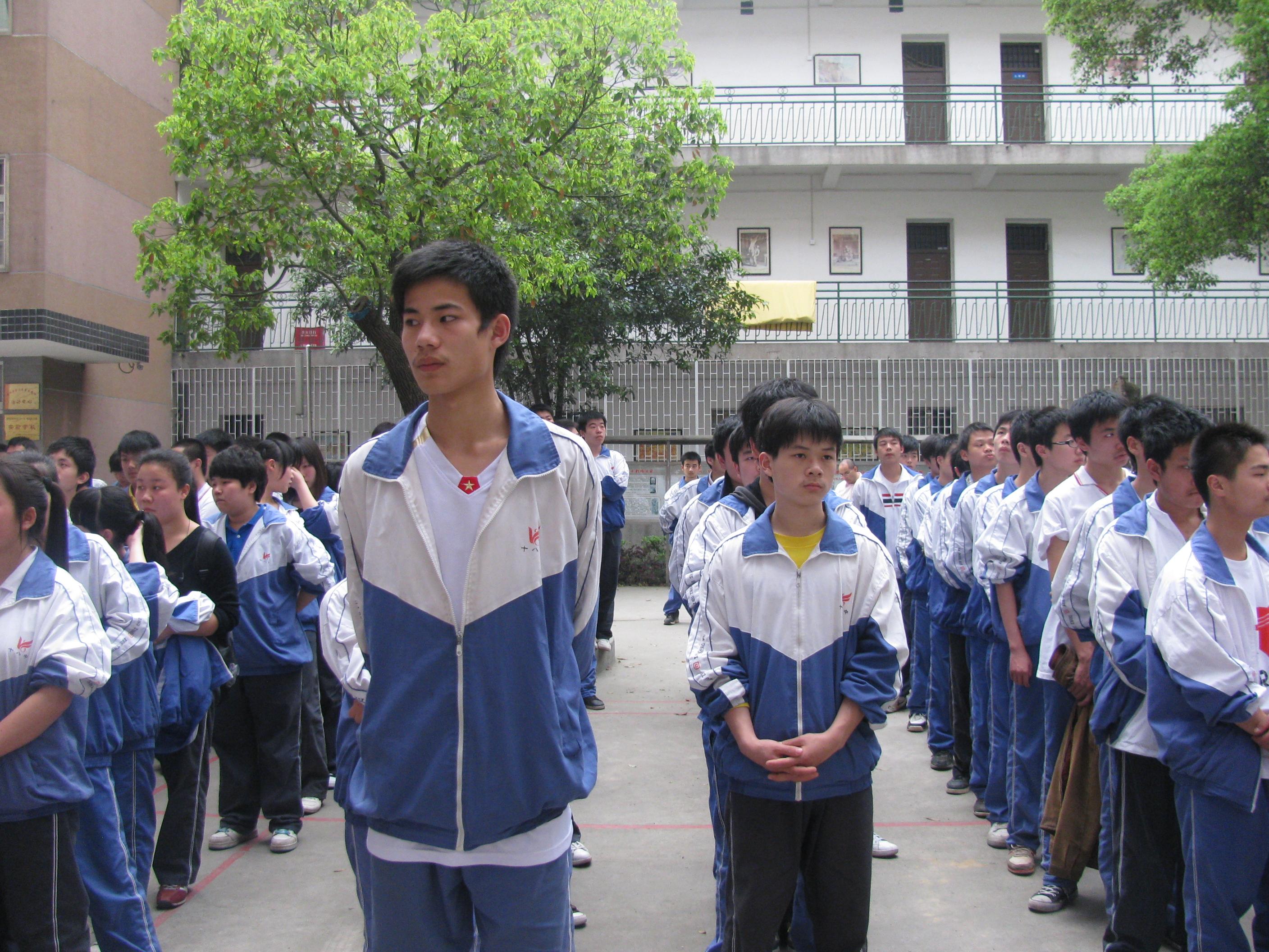 天虽然灰蒙蒙的,可在学生宿舍楼前,学生们整齐列队,着装统一,是在干什么呢?原来这里正召开高二的学生大会。此时学生们正在认真聆听文部长的发言。开学的前半段时间,虽然在学考的巨大压力下,可比起开学,学生们的学习有了很大的进步。这与我们老师平时的辛勤付出分不开。自从开学以来,老师们就牺牲休息时间,利用课余时间,午休时间,九节课后对基础差的学生进行个别辅导。在老师们的帮助下,这部分的同学在这次学考模拟考试中取得了可喜的进步。同时孙部长就前段时间学生的常规行为规范做出了总结,也希望在后阶段的学习中,我们的学生能够朝着德才兼备的方向发展,在学习提高的同时,也要做一名合格的十八中学生。