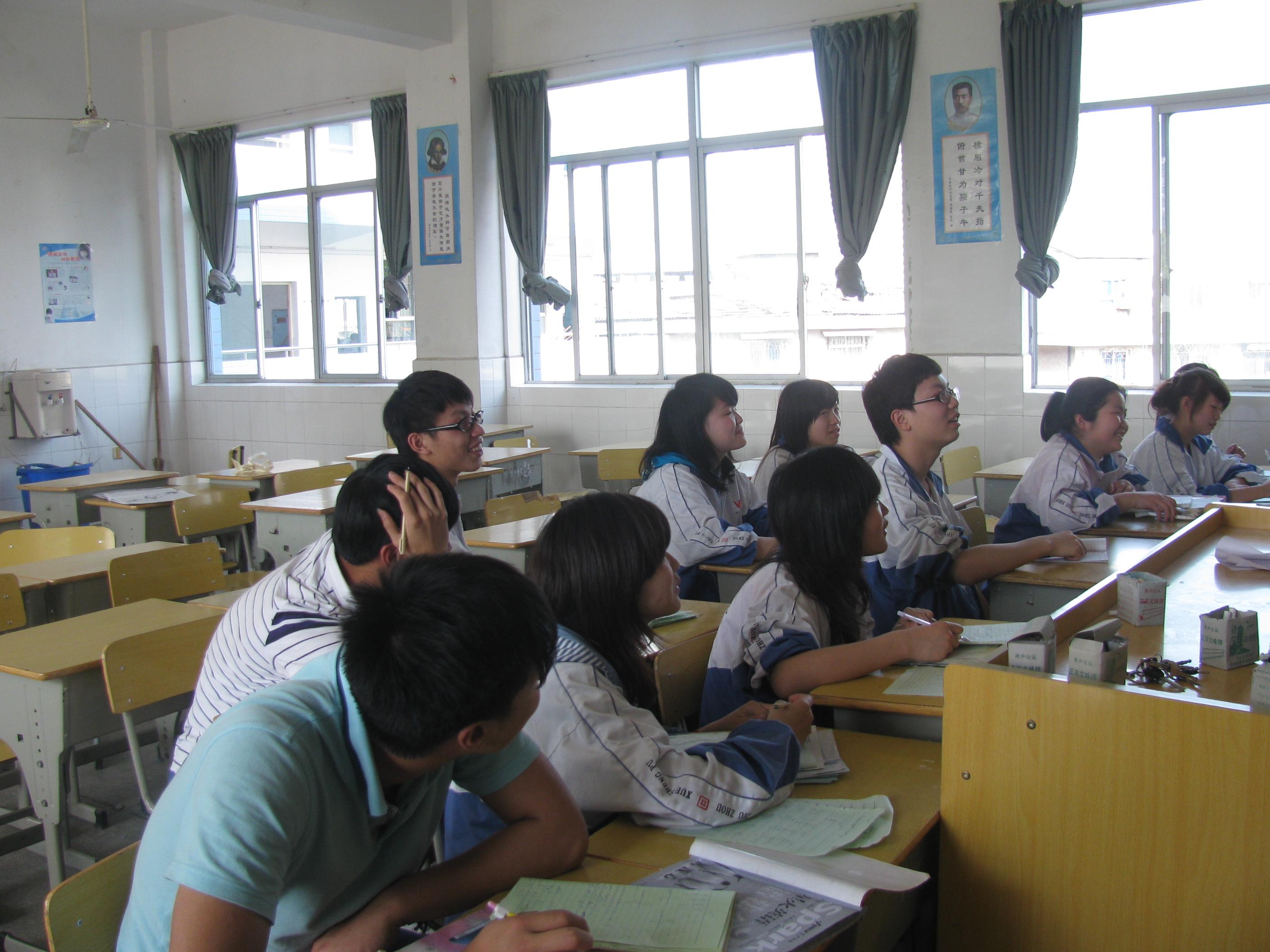 在高二班主任办公室旁边的空教室内,高二数学组的左飞霞老师正在激情洋溢的讲解数学公式。可仔细往教室一看,咦?居然只有十几个学生。怎么回事?原来此时并非是正常上课的时间,而是为了帮助这几个数学基础差的学生,老师们在利用休息的时间给学生上课。虽然只有几个学生,可老师比平时的课更加努力,为的就是让这些学生能够听得懂。我不禁感叹,为什么学考高考一年比一年取得进步,不正是有了许多像这样无私辛勤付出的老师吗?