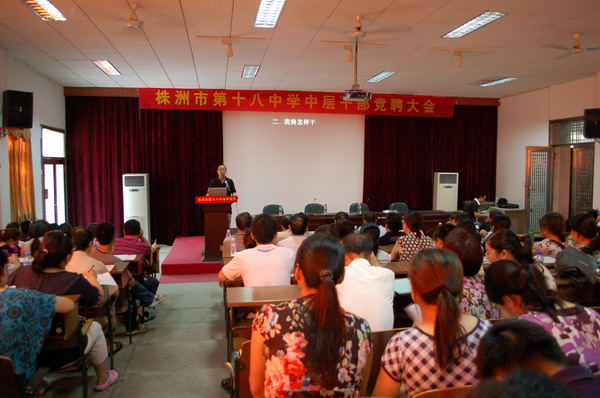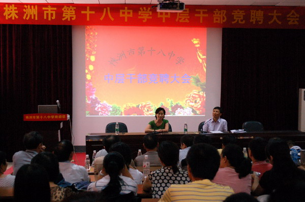 今日,市十八中阶梯教室掌声雷动、气氛热烈,株洲市第十八中学中层干部竞聘大会在此举行。