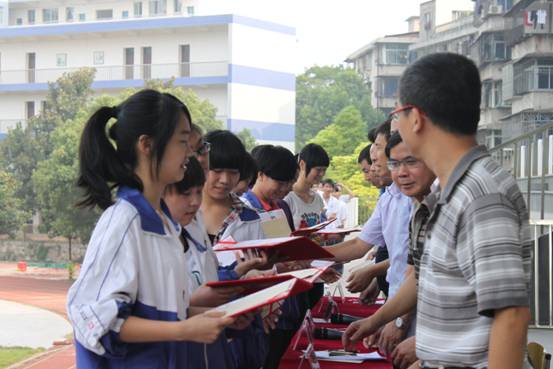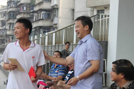 获校长特别奖的高三刘全同学在接受校长颁奖
