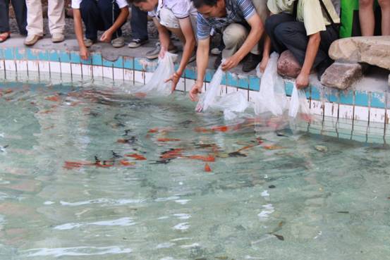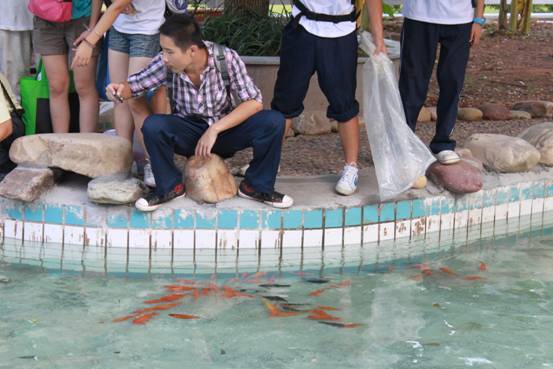 株洲市第十八中学文化园——和园已经改造完毕,和园美不胜收。一池碧水,一泻瀑布,几处灵灵睡莲,一弯小桥,和园便端庄的立在人们眼前。亭台楼阁错落有致,树影婆娑,奇葩争妍,天光云影徜徉其中,和园更见风致。园中鸟谈天,可怎觉少一分滋味。正好今日学校在荷池放养各类观赏鱼。鱼跃水中,欢蹦乱跳,莲花苏醒鱼儿戏。清清的湖水,五颜六色的小鱼,欢声扑面的笑脸,远处琅琅书声都腾结一起。整个校园都鲜活起来!